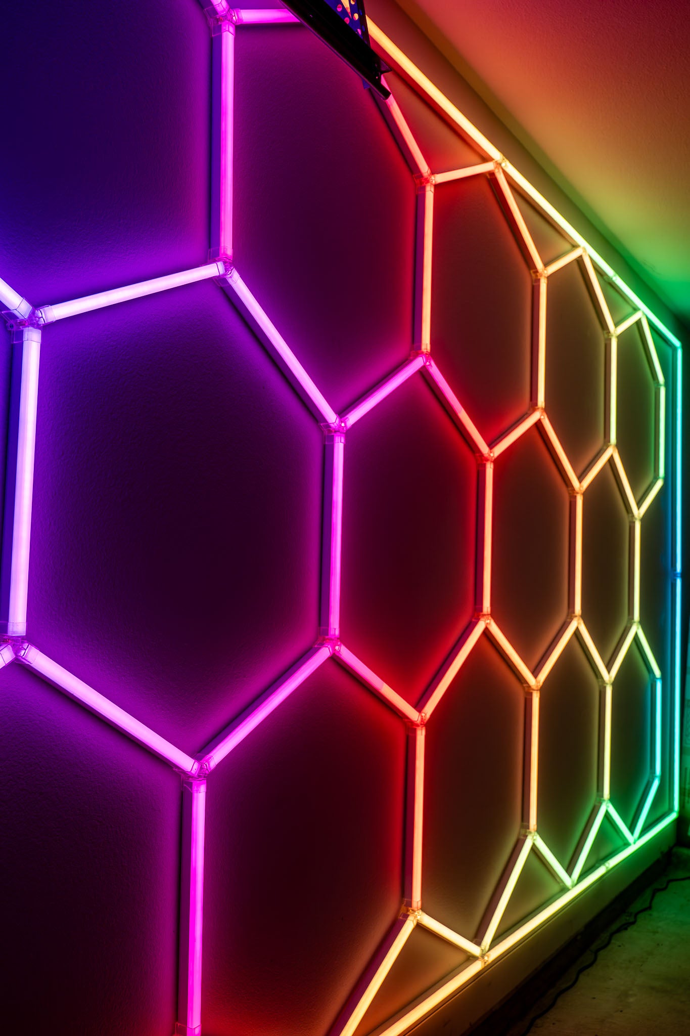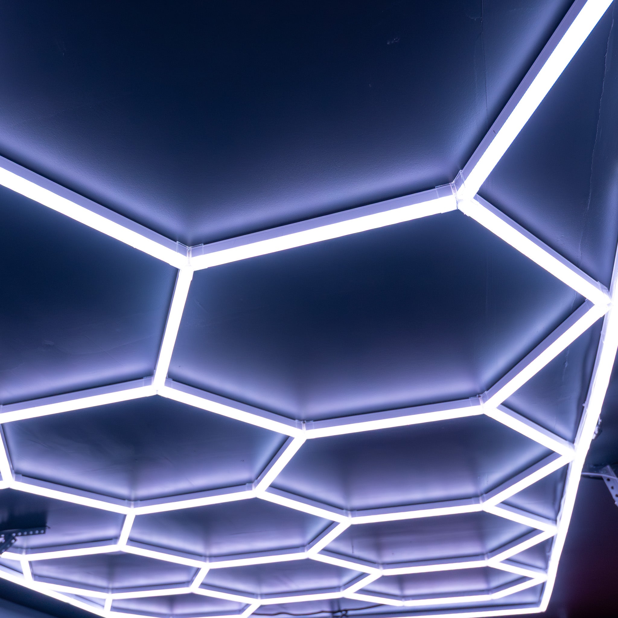 Balvolt™ RGB Hex Lights command attention. Precision-built panels form a striking honeycomb pattern that transforms any garage or workspace with vivid color and clean white illumination.